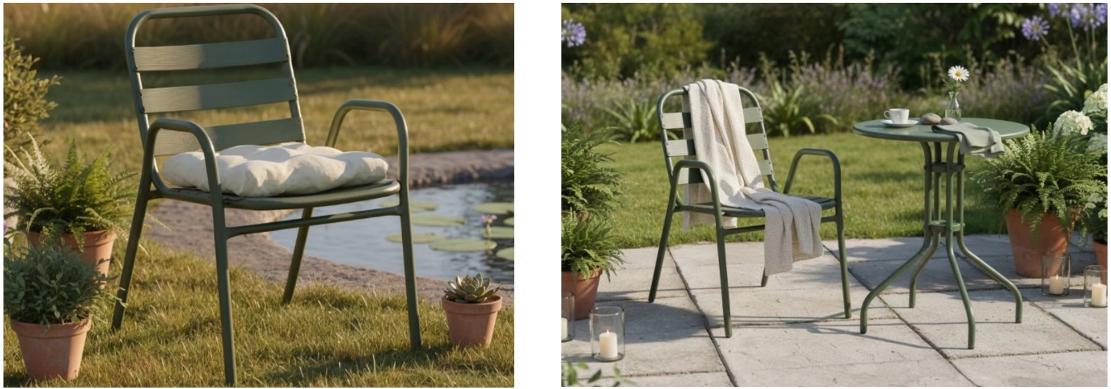 V sortimente ASKO – NÁBYTOK zákazníci nájdu široký výber záhradného nábytku – od jedálenských setov až po relaxačné kreslá. Napríklad jedálenská zostava Grosseto ponúka moderný dizajn a stabilnú konštrukciu vhodnú na posedenie v záhrade či na terase. Zostava kombinuje béžovú kovovú konštrukciu s imitáciou dreva, ktorá je štýlová a nenáročná na údržbu. Súčasťou je rohová lavica, jedálenský stôl a dve stoličky. Mäkké vankúše zabezpečujú pohodlie, zatiaľ čo variabilné riešenie umožňuje lavicu rozdeliť a prispôsobiť priestor aktuálnym potrebám.