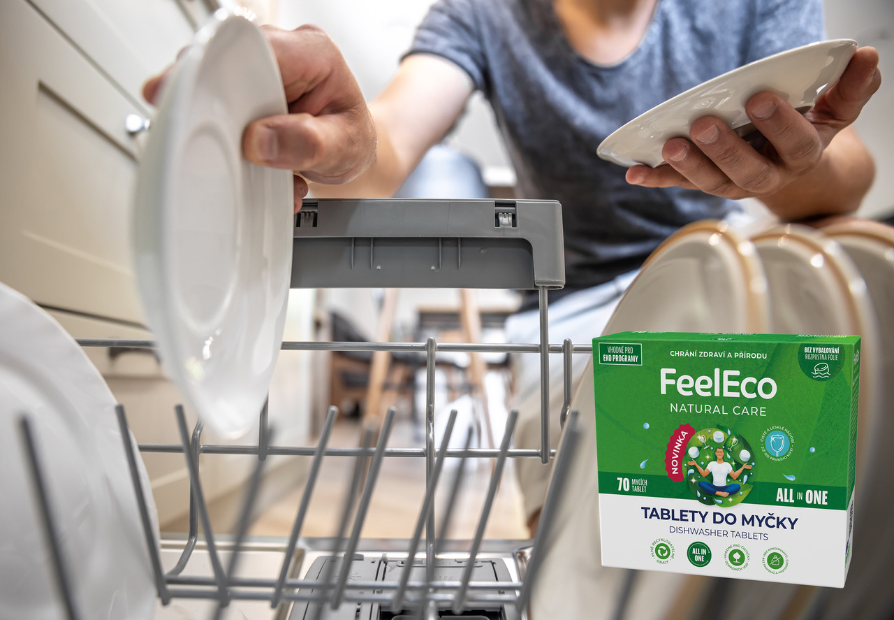 „Na umývanie riadu v umývačke použite FeelEco Tablety do umývačky All in One. Už od prvého umývania, bez predumývania a s úsporou vody a energie zaistí krásne čistý a lesklý riad. Neobsahujú konzervanty, fosfonáty, ani parfémy, takže nezanechávajú na riade žiadnu vôňu ani pach, ktorý by ovplyvnil chuť jedla,“ hovorí Radek Marták.