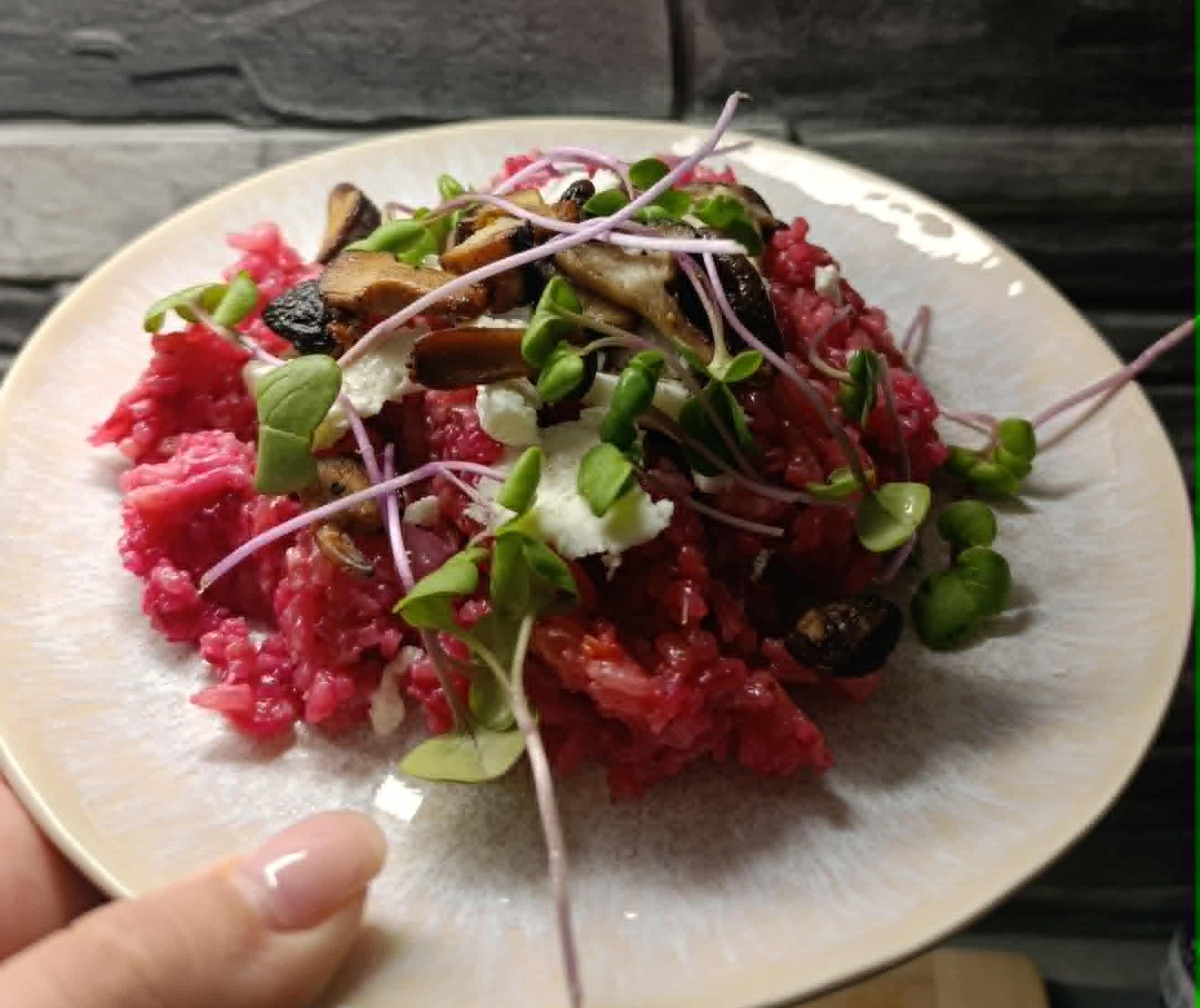 Cvikla dodá rizotu krásnu farbu, jemne sladkastú chuť a v kombinácii s parmezánom a feta syrom vznikne dokonalé jedlo plné chuti aj výživy. Skvelý tip na zdravý obed bez mäsa!