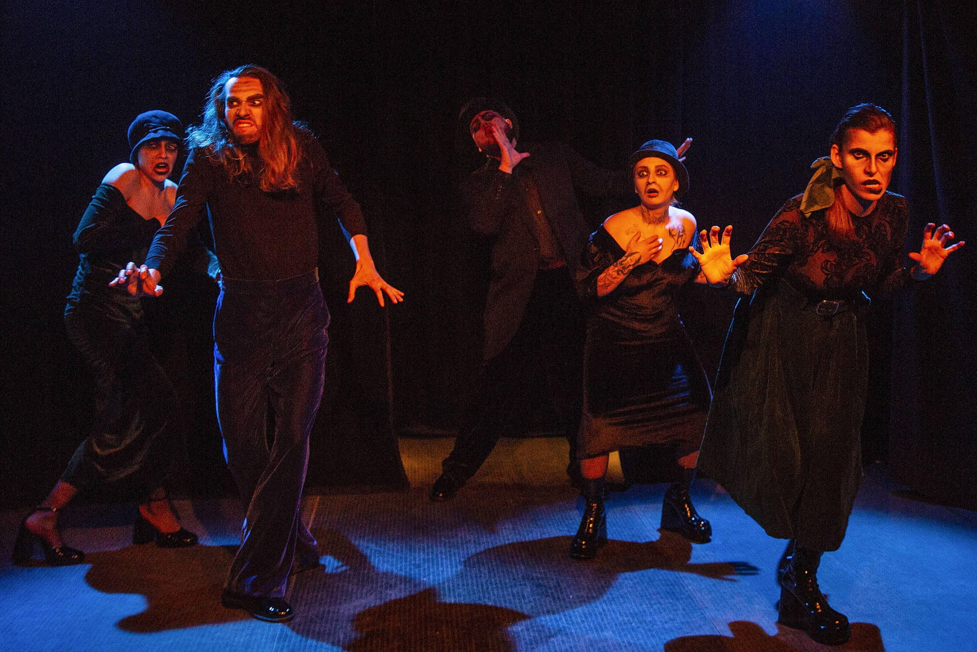 Sedem hercov nás vťahuje do svojho vnútorného sveta, v ktorom sa miešajú banálne rozhovory s nutkavými obsesiami, úvahy o nenávisti a láske, vzťahy nežné, ale aj veľmi surové. Súbor sa naďalej vyjadruje svojím typickým originálnym jazykom, či už skutočným, alebo pohybovým, so značnou dávkou expresívnosti. V tomto prípade používa aj expresionistické prvky vo výtvarnom poňatí inscenácie. „Termín expresionizmus je často vykladaný ako „pocit úzkosti“, čo súvisí s tým, že väčšina expresionistických diel je neveselá a tento pocit sa snaží navodiť“ ... je to „nadčasová tendencia, ktorá sa prejavuje v umení v určitých zvratových obdobiach ako reakcia na nepokojnosť doby“.