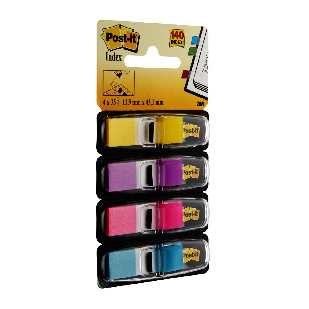 Farebné Post-it® záložky v podávači: silne lepiace, popisovateľné, mix 4 farieb. Veľkosť 25,4 x 38 mm, 50 ks záložiek v každej farbe.