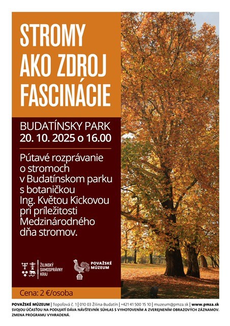 V pondelok 20. októbra 2025 sa pri príležitosti Medzinárodného dňa stromov bude pod korunami stromov v Budatínskom parku konať podujatie s názvom Fascinácia stromami.