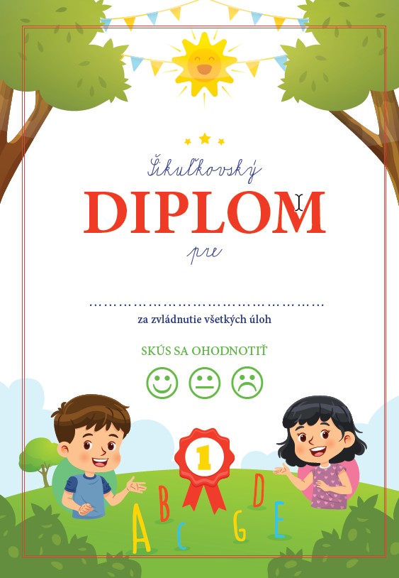 Pracovný zošit je plnofarebný a pozor, na konci je aj Diplom, kde môžete doplniť meno svojho drobca za jeho snahu a šikovnosť, vystrihnete a zarámujete.