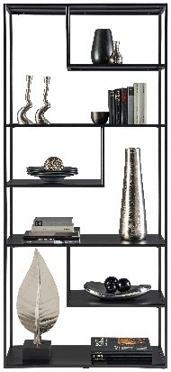 Surová elegancia industriálneho štýlu. Čierna oceľová konštrukcia s otvorenými policami pôsobí ľahko, ale ponúka pevnú oporu pre vaše knihy, dekorácie alebo rastliny.