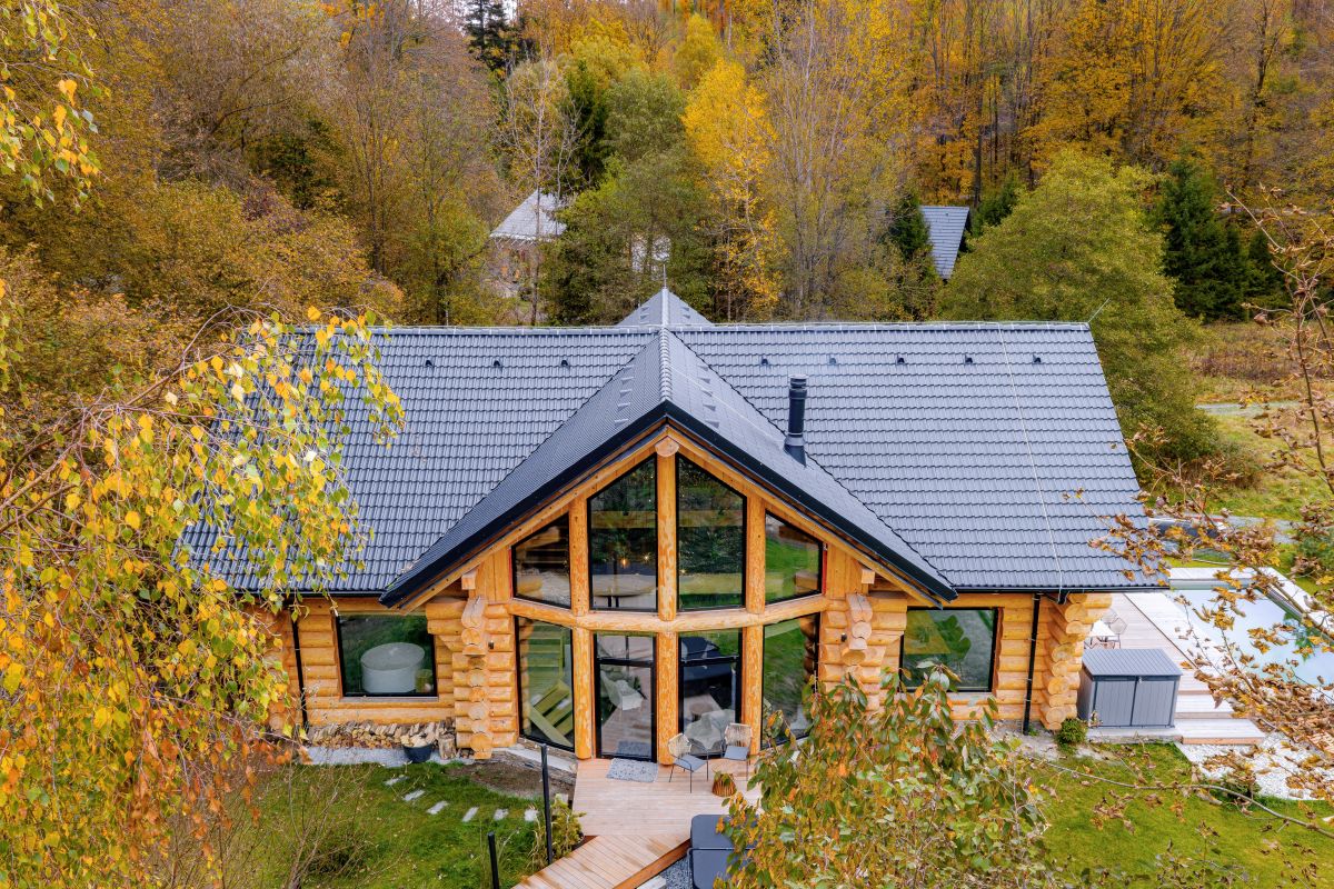 Pri prvom pohľade na dom by len málokto uhádol, že nestojí v horskej kanadskej divočine, ale na Morave. Pri plánovaní vzhľadu nového domu boli pre pani majiteľku inšpiráciou jej cesty na Slovensko, kde ju očarili miestne domy s presklenými štítmi. Pre umiestnenie zrubu, ktorý nie je pre Českú republiku typickou stavbou, našla ideálnu lokalitu – v Bělkovickom údolí, neďaleko prameňa Tešíkovskej kyselky.