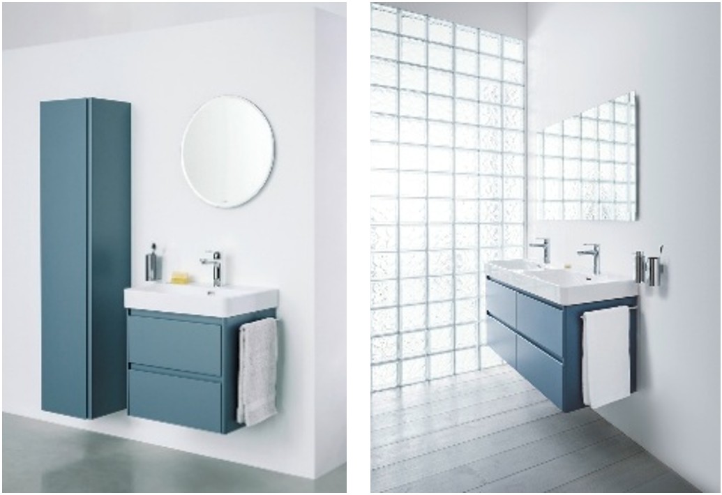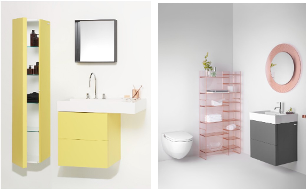 Kolekcia Kartell • LAUFEN nezaprie inšpiráciu geometrickými tvarmi a hravosť. Skrinky sú dostupné vo veselých pastelových a energických farbách ako oblázkovo a bridlicovo sivá, okrovo hnedá, horčicovo žltá alebo šedomodrá. Potešia priestrannými zásuvkami, vonkajšími poličkami na bokoch skriniek a praktickým organizérom vo vnútri. Súčasťou kolekcie sú aj plastové regály v trendových farbách.