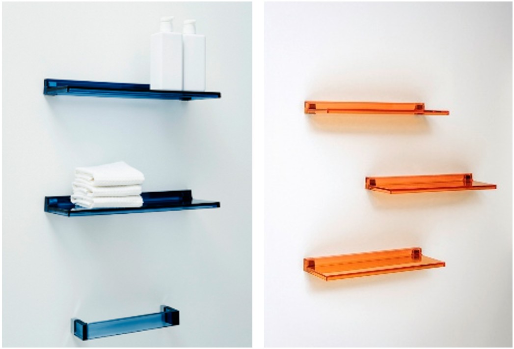 Minimalistická kolekcia Kartell • LAUFEN myslí na každý detail, jej súčasťou je preto aj rada štýlových poličiek. Vyhotovené sú z odolného plastu, ktorý sa nielen ľahko udržiava čistý, ale aj dlhodobo odolá náročnému kúpeľňovému prostrediu. K dispozícii sú v celej škále expresívnych farieb – od jantárovej, modrej, medenej, smokey grey až po oranžovú mandarinku, smaragdovo zelenú a ďalšie.