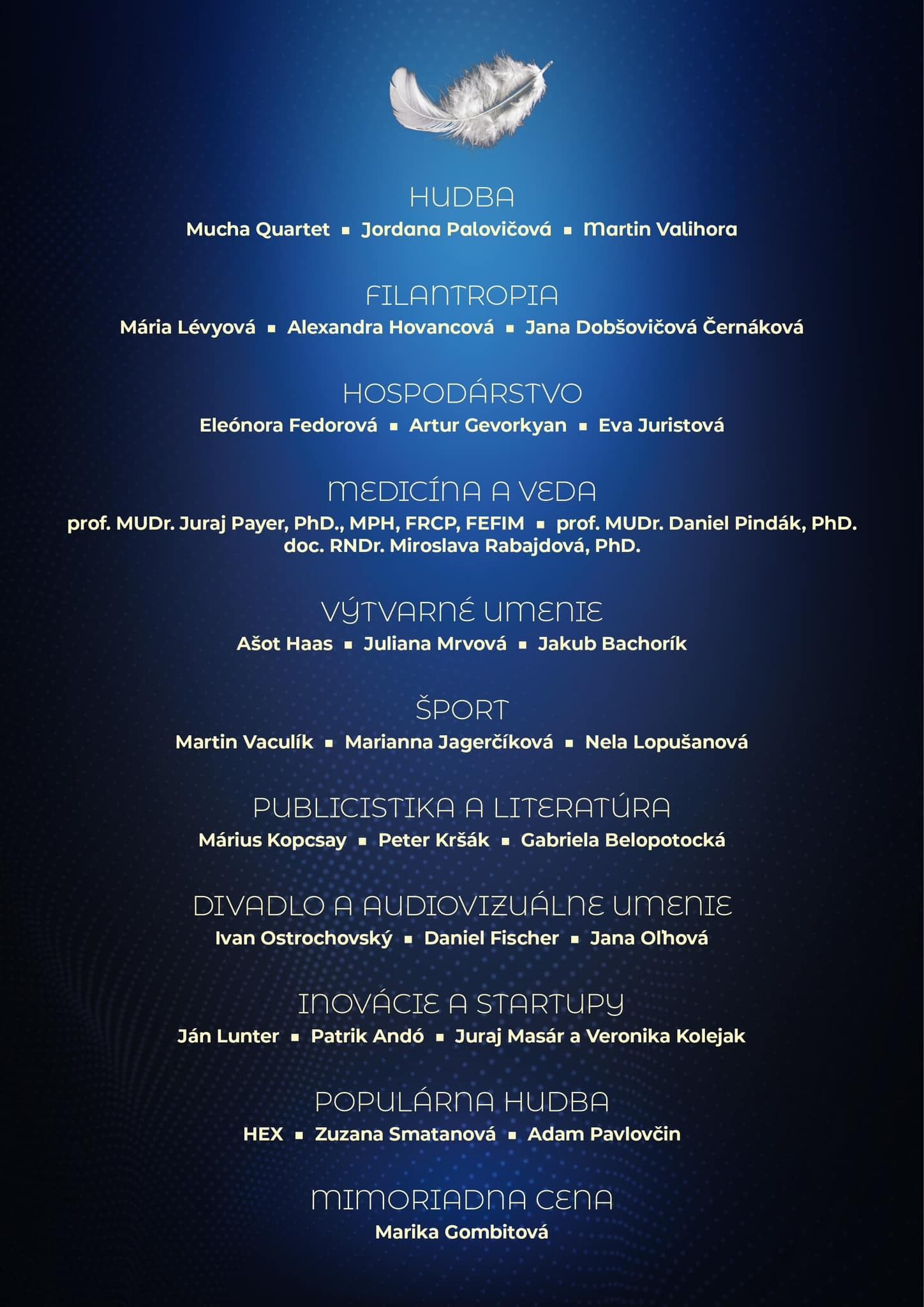 Laureátov za rok 2023 v jednotlivých kategóriách spoznáme 16.marca 2024, v priamom prenose na Jednotke o 20:30.