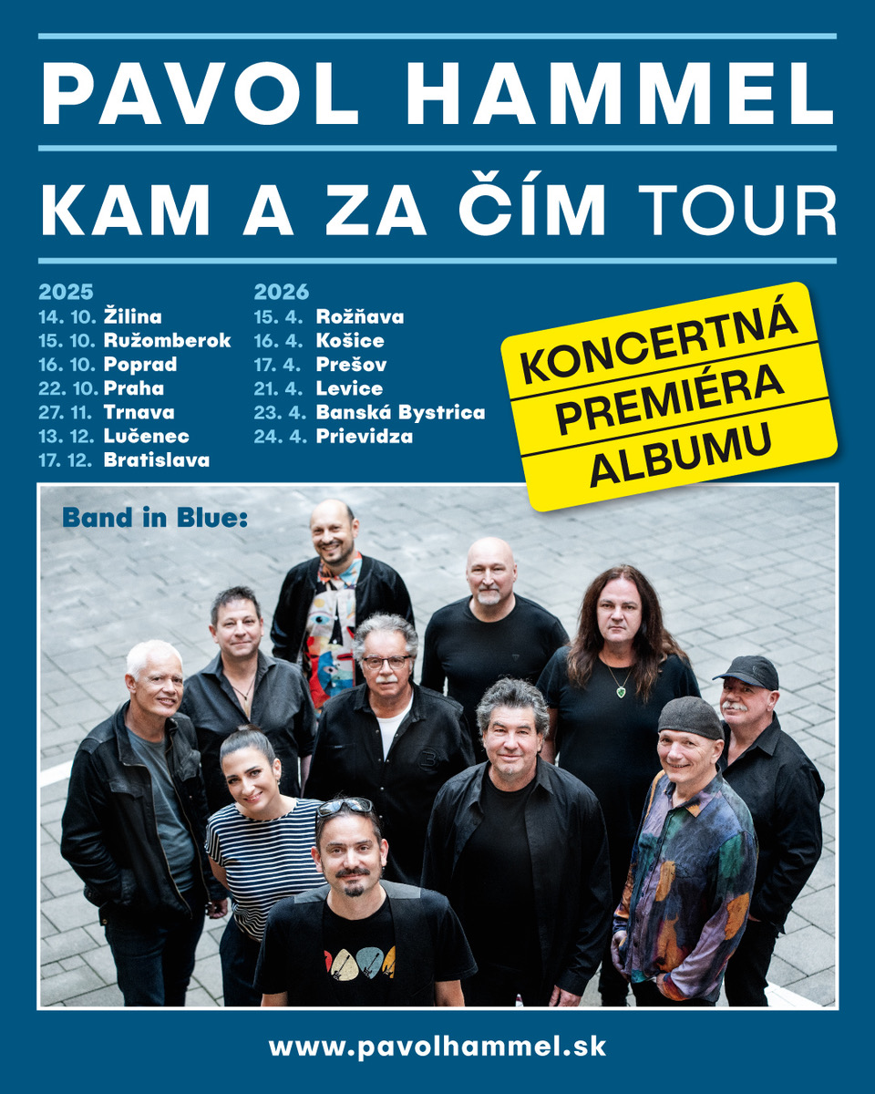 Nový album, nadčasové hity a zostava špičkových hudobníkov – fanúšikovia Pavla Hammela sa môžu už od polovice októbra tešiť na sériu koncertov, ktoré sľubujú výnimočný hudobný večer. Hammel so svojou jedenásťčlennou kapelou prinesie na pódium predovšetkým piesne z aktuálneho albumu Kam a za čím, ktorý patrí medzi najlepšie nahrávky uplynulého roka nielen na Slovensku, ale aj v Česku.