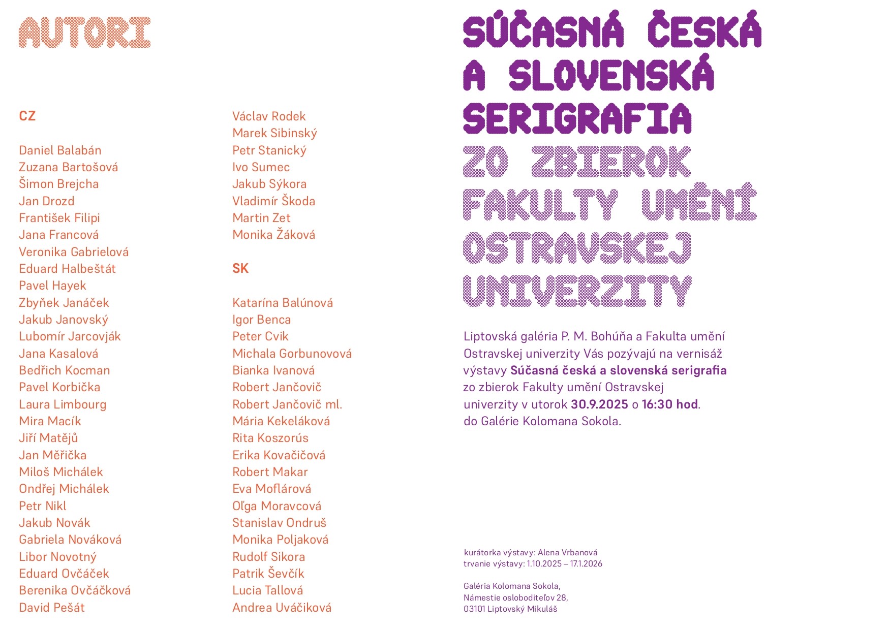 Výstava Súčasná česká a slovenská serigrafia zo zbierok Fakulty umění Ostravskej univerzity je súčasťou projektu ISSO x Album 76 – Česko-slovenská grafika včera a dnes, realizovaného v rámci programu Interreg Slovensko Česko 2021-2027. Projekt je spolufinancovaný Európskym fondom regionálneho rozvoja. V spolupráci Liptovskej galérie P. M. Bohúňa a cezhraničného partnera - Ostravskej univerzity realizujeme výstavu v Galérii Kolomana Sokola, pobočke Liptovskej galérie P. M. Bohúňa v Liptovskom Mikuláši. „Vážime si spoluprácu s naším českým partnerom. Medzinárodné kooperácie sú pre našu inštitúciu kľúčové, snažíme sa ju dlhodobo etablovať v stredoeurópskom kultúrnom priestore.“ hovorí riaditeľ Liptovskej galérie Richard Gregor.