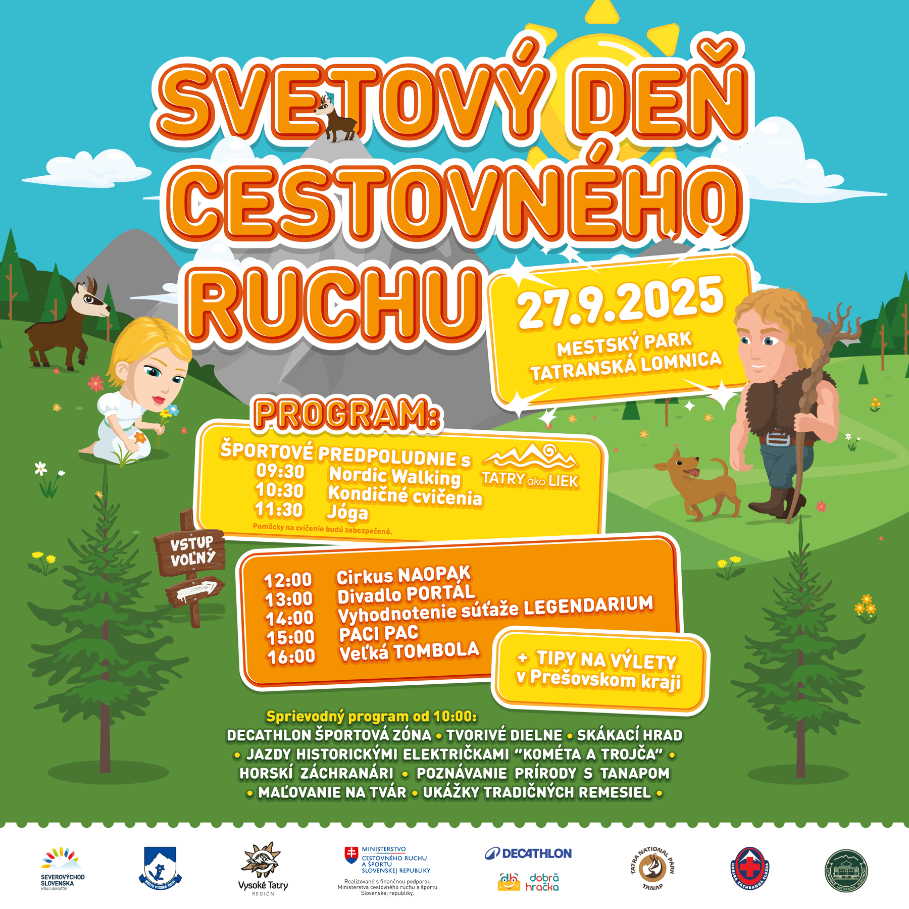 Mestský park v Tatranskej Lomnici sa v sobotu 27. septembra 2025 premení na miesto plné pohybu, zábavy a inšpirácií. Organizátori si v rámci osláv Svetového dňa cestovného ruchu pripravili pestrý program pre všetky vekové kategórie. Vstup na podujatie je voľný, program sa začne už ráno o 9.30 hod. športovými aktivitami. Hlavný program sa začne o 12.00 hod.