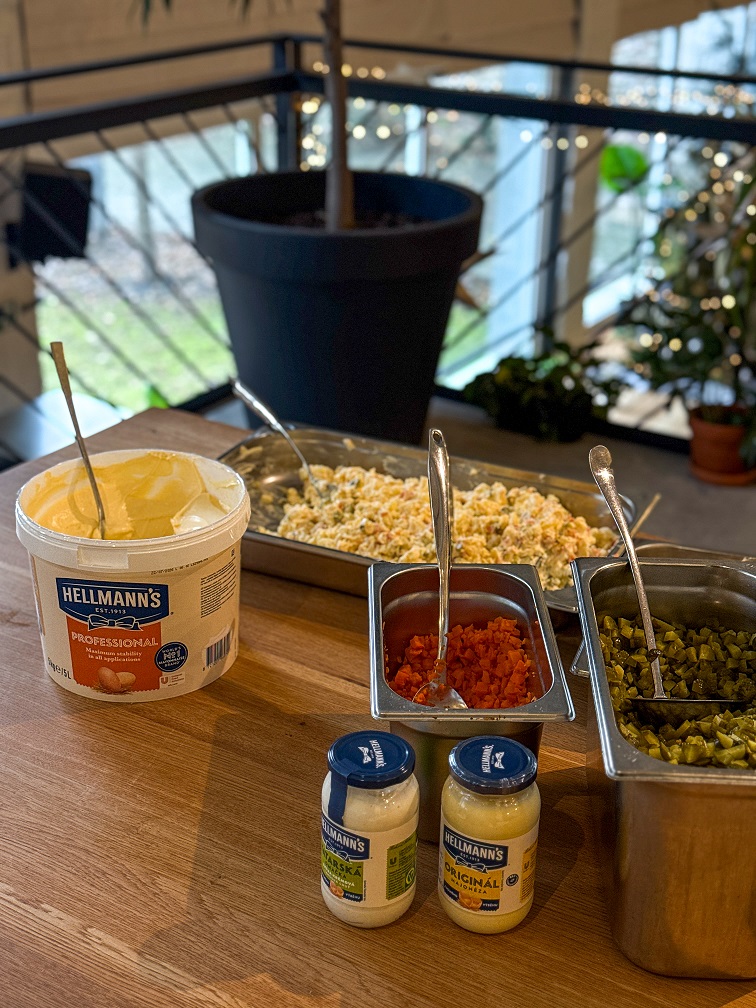 Zemiakový šalát pripravujú zamestnanci Hellmann’s spolu s partnermi projektu. Už od roku 2020 značka odovzdala necelých 20 000 porcií, teda takmer 4 tony tohto tradičného vianočného jedla.