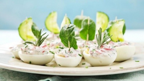Vajcia neodmysliteľne patria k veľkonočným sviatkom. Čo však robiť s výslužkou? Jednoduché jednohubky nikdy neomrzia. Recept je pritom rýchly a veľmi univerzálny – je len na vás, čo do žĺtkovej hmoty pridáte – máte radi reďkovky, jarnú cibuľku, bylinky alebo napríklad kúsky údeného lososa? Chutiam a variáciám sa medze nekladú.