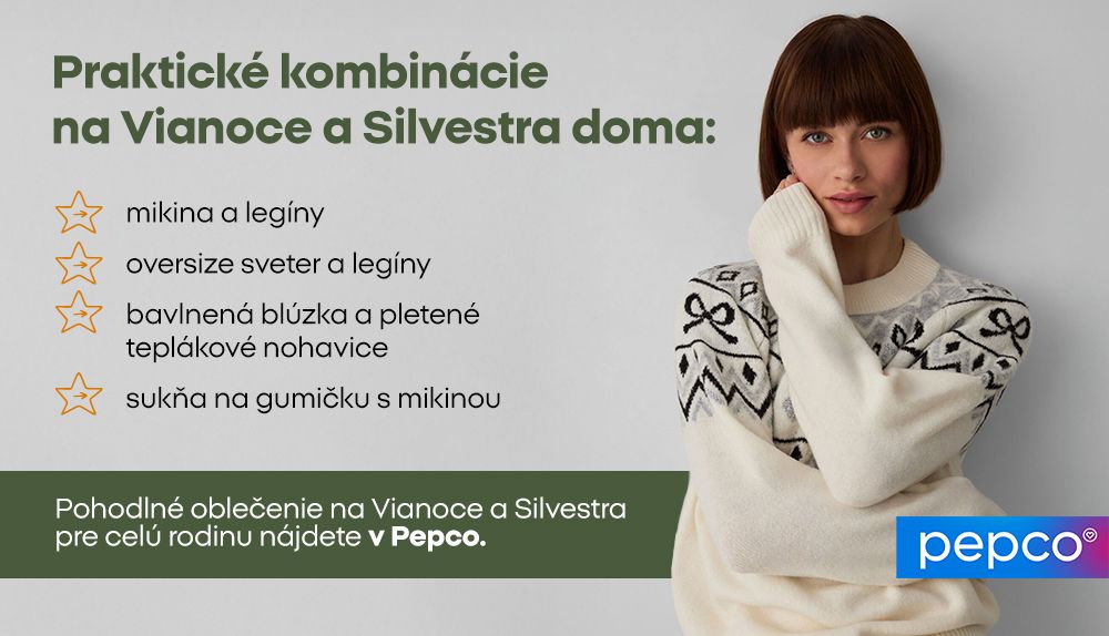 Strávenie Vianoc a Silvestra doma má svoje čaro. Umožňuje pocit pohody, relaxu a sústredenia sa na trávenie kvalitného času s vašimi blízkymi. Útulnosť je slovo, ktoré je neoddeliteľne spojené s pohodlím domova – aj keď čakáte na prvú hviezdičku na oblohe alebo odpočítavate posledné sekundy starého roka. Ak plánujete tento výnimočný čas stráviť tento rok vo svojich vlastných kútoch, postarajte sa o to, aby ste sa cítili pohodlne. Postarajte sa o vhodné oblečenie pre mamičku aj bábätko – pohodlné, ale zároveň vhodné na túto príležitosť. Objavte ponuky dostupné v Pepco!