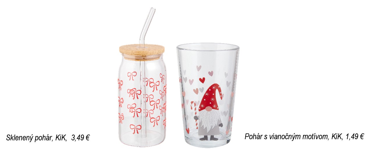 Od vianočného čaju po kakao - tieto kúsky rozveselia každý stôl. Sklenený pohár s červenými mašličkami pôsobí moderne a sviežo, zatiaľ čo pohárik s trpaslíkom je ideálny na detské nápoje alebo sladké limonády počas pečenia.