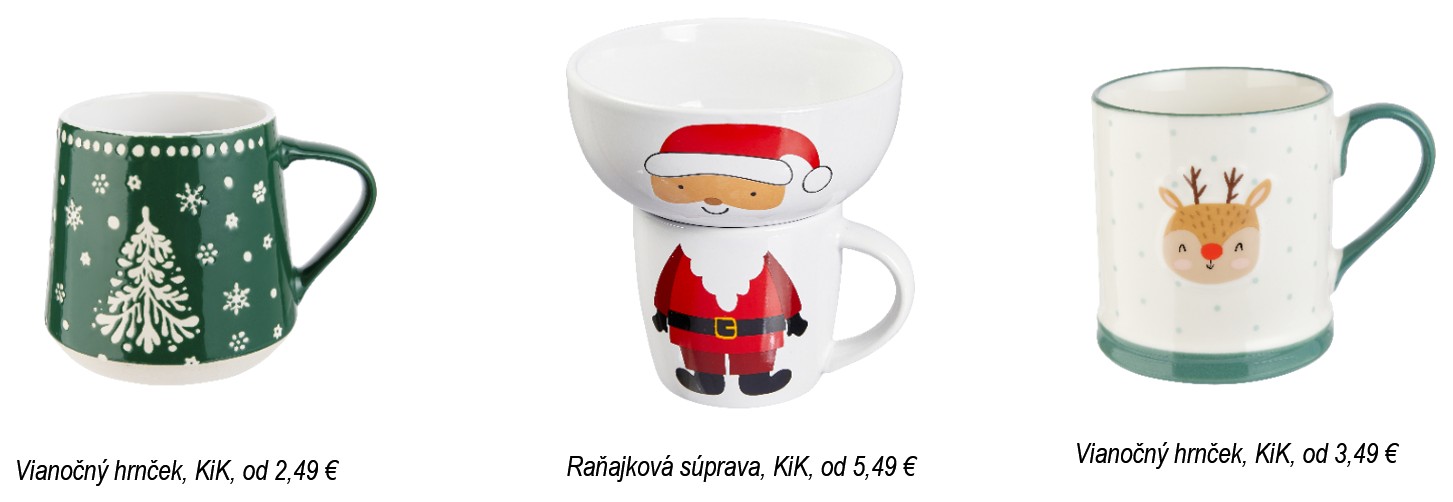 K Vianociam patria nielen ozdoby na stromček, ale aj útulná atmosféra pri stole či pri pečení. V KiK nájdete hrnčeky, poháre, taniere aj formičky, ktoré spravia aj obyčajné ranné kakao či popoludňajšie pečenie sviatočnejším. Sú to presne tie drobnosti, ktoré dotvoria decembrovú náladu – hravé a praktické.