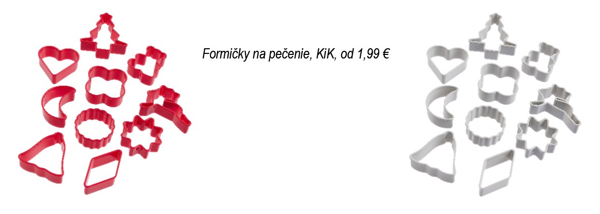 A aké by to boli Vianoce bez vône lineckého či medovníkov? V KiK nájdete formičky v rôznych tvaroch - hviezdy, stromčeky či zvončeky, s ktorými vytvoríte peknú jedlú dekoráciu.