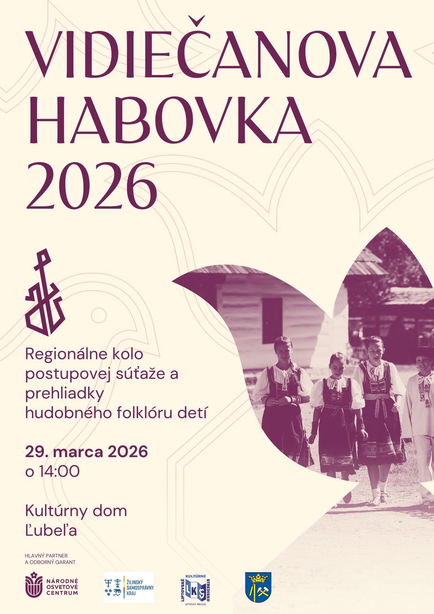 Dňa 29. marca 2026 o 14.00 hod. sa v Kultúrnom dome v Ľubeli uskutoční regionálna súťaž a prehliadka hudobného folklóru detí Vidiečanova Habovka.