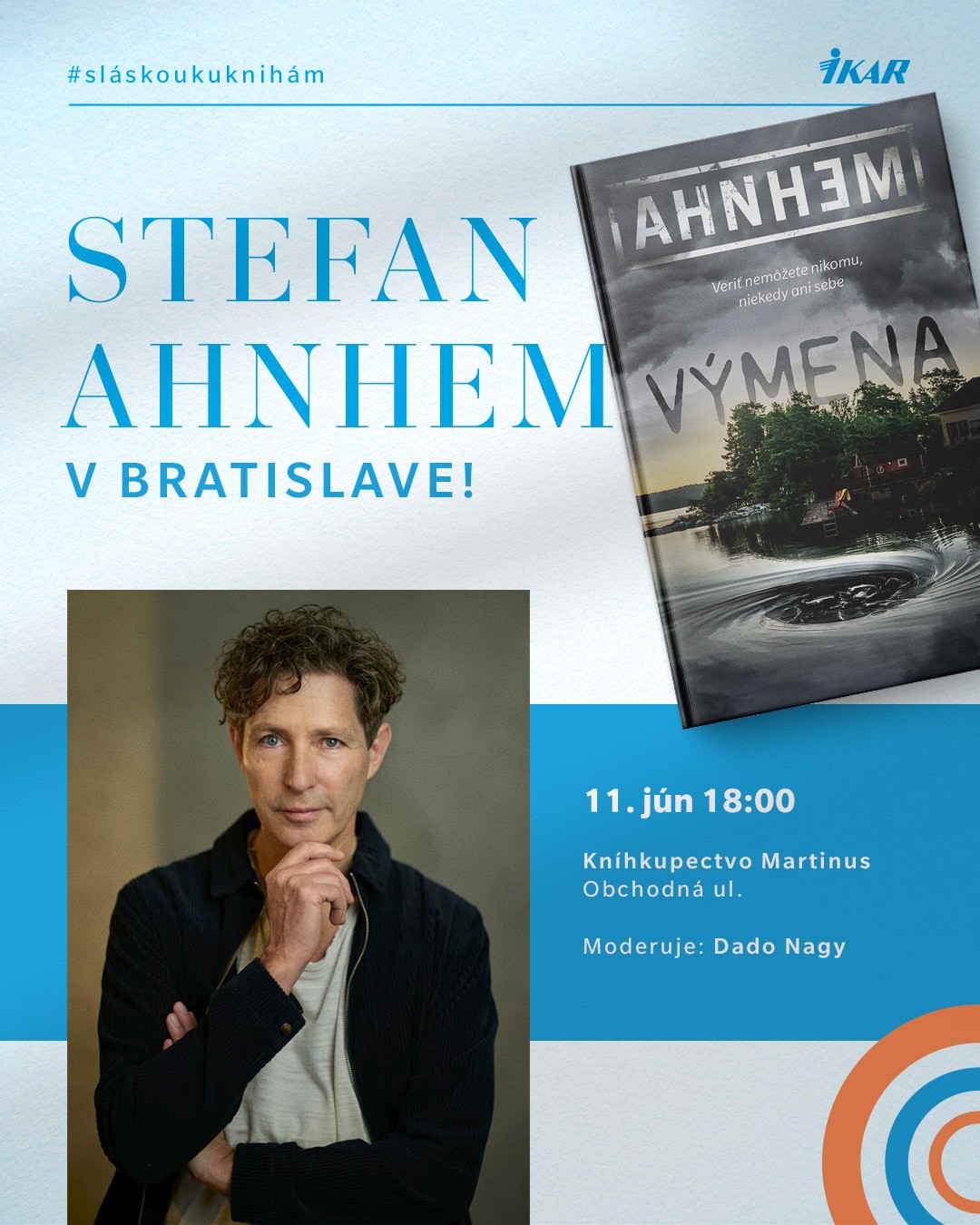 Mrazivý príbeh Výmena príde Stefan Ahnhem predstaviť osobne aj na Slovensko. V utorok 11.júna sa stretne aj so svojimi čitateľmi a fanúšikmi v kníhkupectve Martinus na Obchodnej ulici v Bratislave. Najskôr bude beseda a po nej autogramiáda.