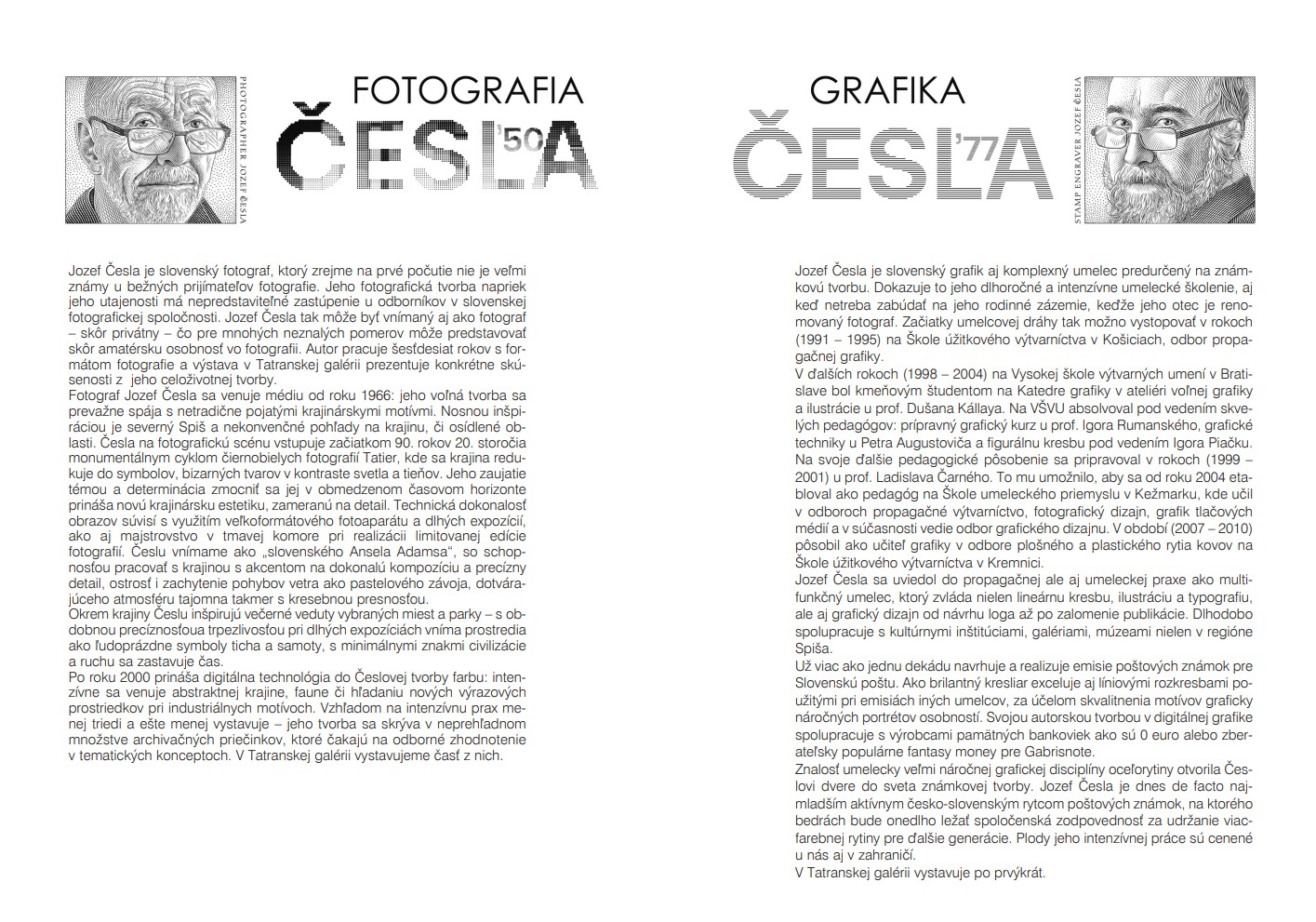 Dovoľujeme si Vás pozvať na otvorenie výstavy známych umelcov nášho regiónu Jozefa Česlu staršieho ako fotografa a jeho syna Jozefa Česlu mladšieho ako grafika, rytca známok, nositeľa mnohých ocenení v oblasti filatélie.