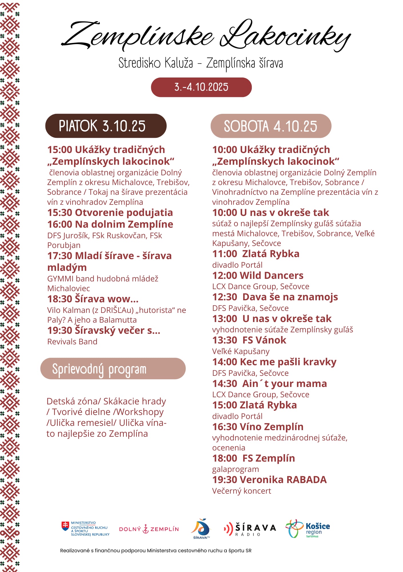 Festival nebude len o jedle. Atmosféru dotvoria vystúpenia folklórnych súborov a hudobných kapiel – FS Zemplín, Revivals, Veronika Rabada, Vilko Kalman s kapelou Balamuta. Pre deti sú pripravené tvorivé dielne a remeselné workshopy, ktoré spoja zábavu s poznaním tradičných zručností.